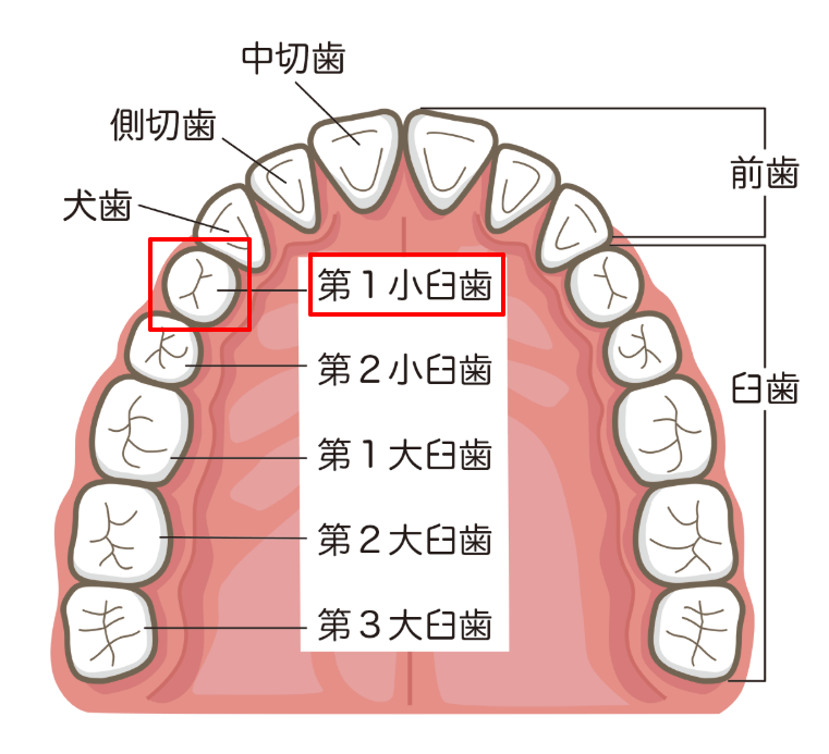 多くの場合、第一小臼歯(前から4番目の歯)を抜歯して、そのスペースを使って前歯を後退させます。