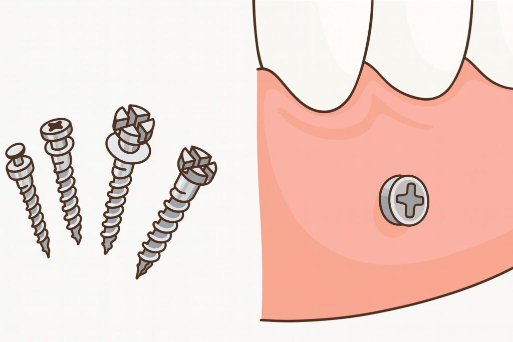 最近は、歯科用アンカースクリューという小さなネジを使って、奥歯を効率的に後方移動させる技術も進歩しています。