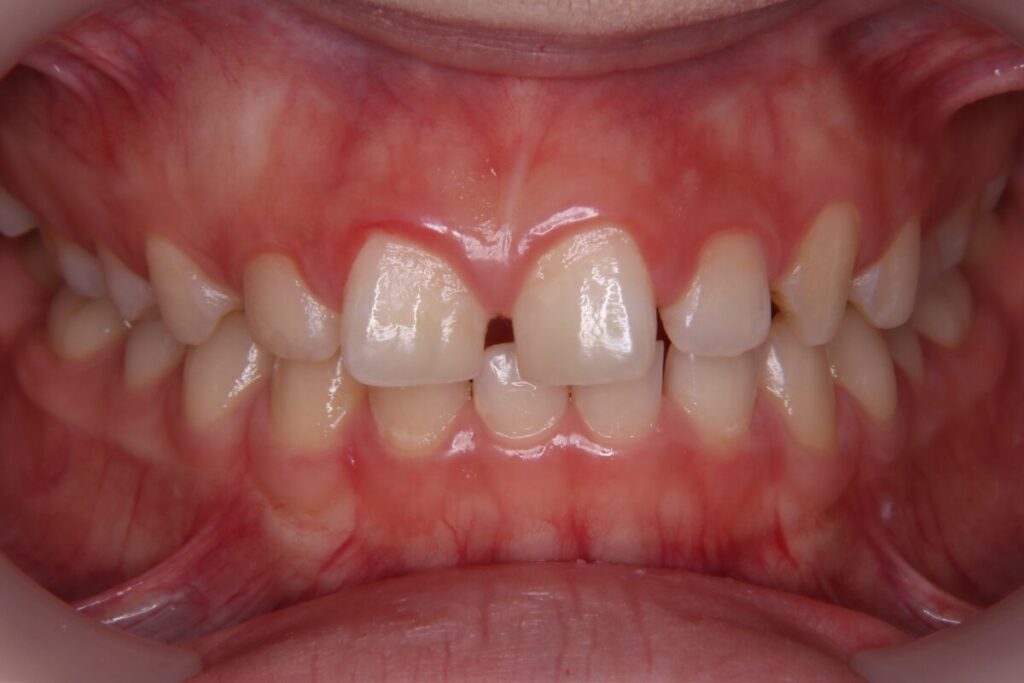 前歯のすき間と、乳歯が残っていることを気にされてご相談いただきました。