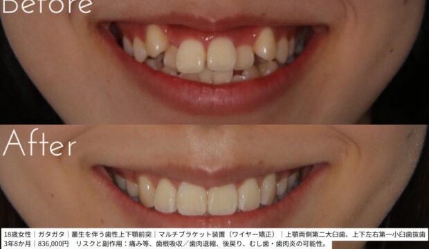 抜歯+ワイヤー矯正でガタガタ(叢生)を改善(10代女性・約3年8か月・836,000円)