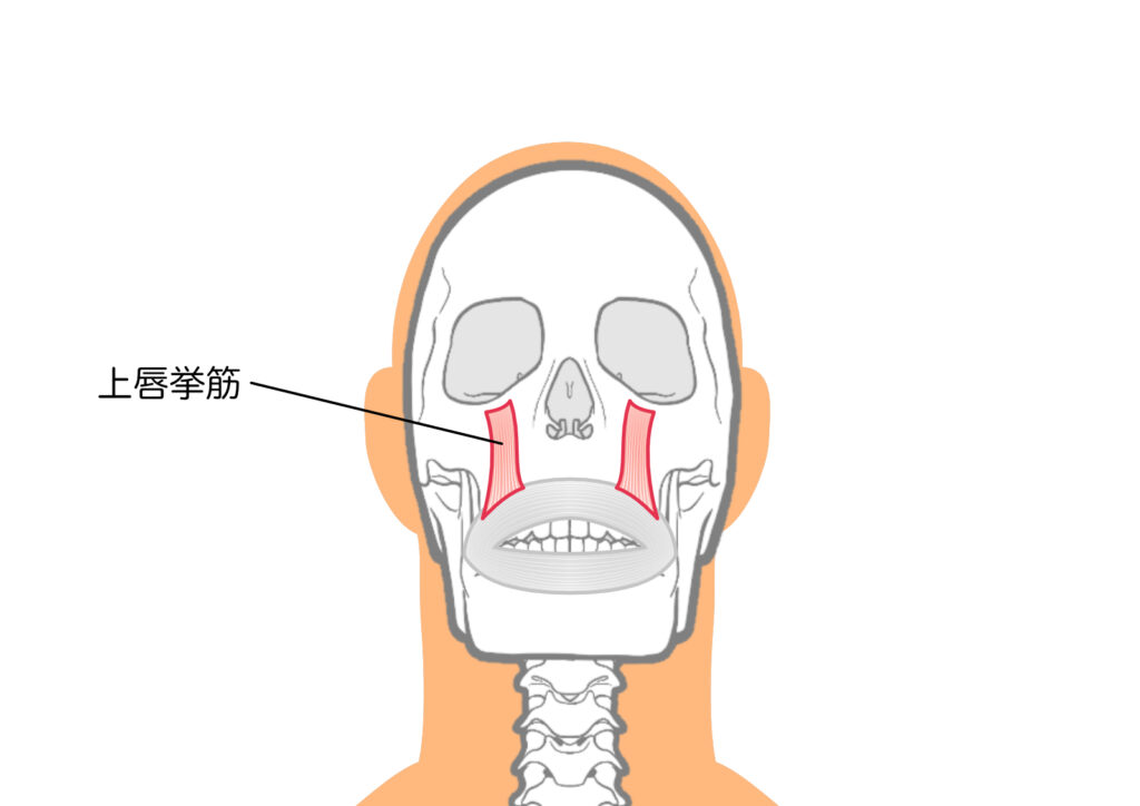 上唇挙筋を始めとする上唇を持ち上げる筋肉の働きが強いと、笑ったときに歯ぐきが多く露出します。