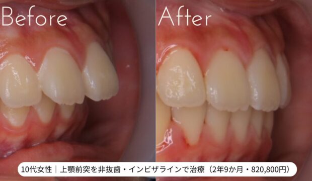 20代女性|骨格性上顎前突を抜歯+アンカースクリュー+インビザラインで治療(2年3か月・919,600円)