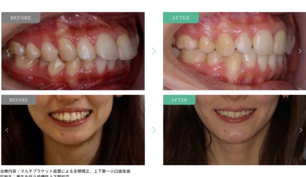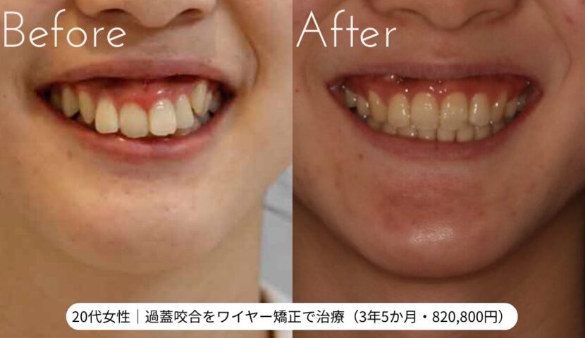 20代女性|過蓋咬合を抜歯・ワイヤー矯正で改善(3年5か月・820,800円)