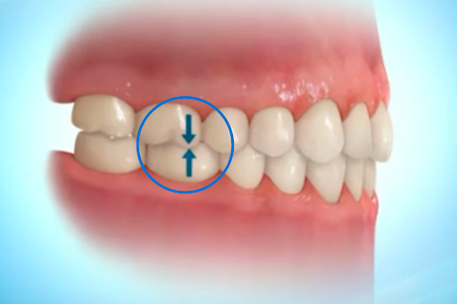 前歯が深くかぶさっていると、下の歯や歯ぐきを傷つけたり、あごの動きが制限されやすくなるため、将来的に不快感や関節症のリスクを高める要因になります。